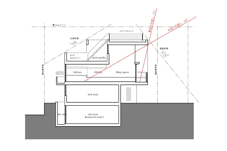 東京都世田谷区に計画している地下1階地上3階建ての都市型住宅。